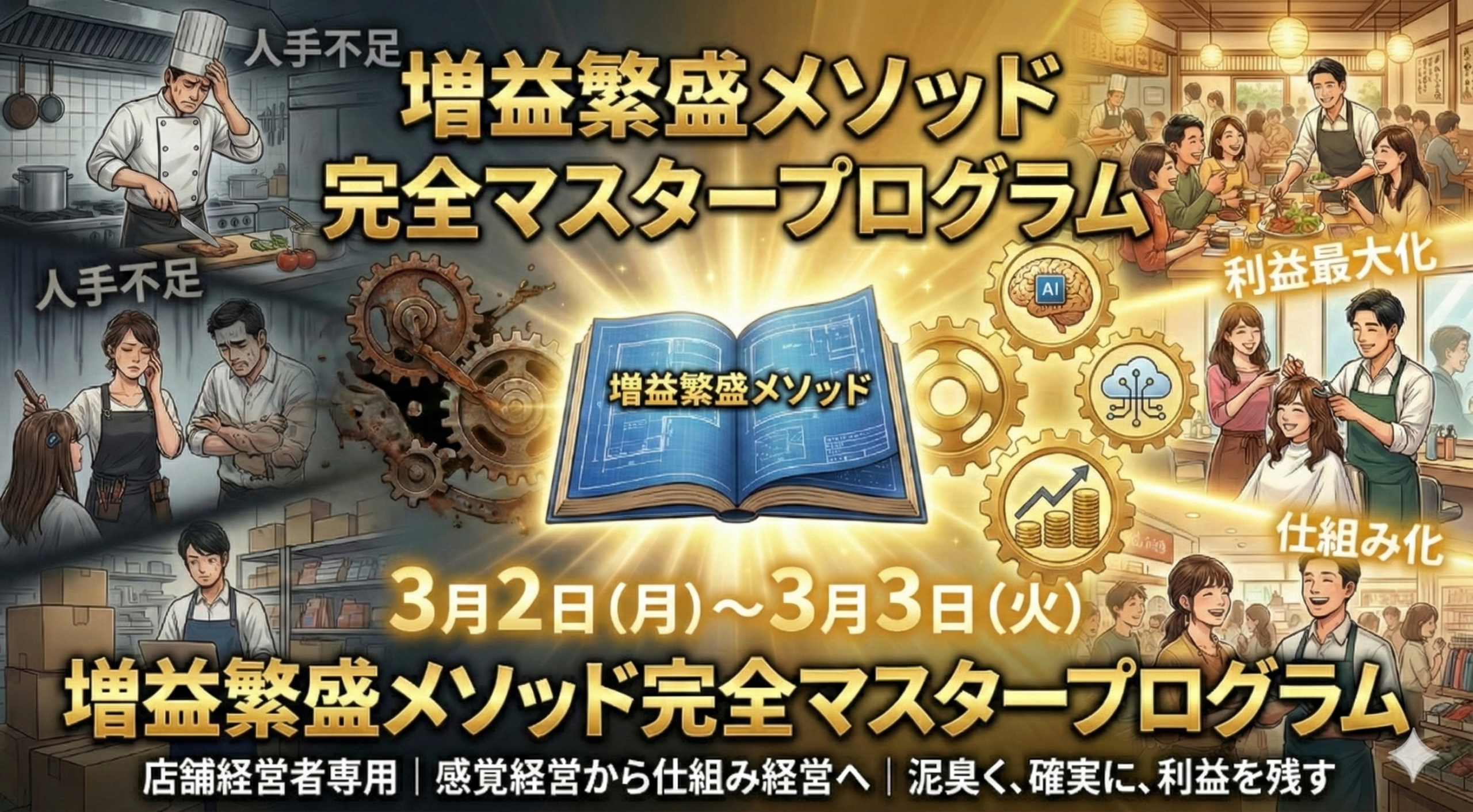 増税、物価高、人手不足。 これから飲食店経営の「二極化」はさらに残酷なまでに進みます。 儲かる店と、消える店。その**【店舗格差】**を分けるのは、 料理の腕でも立地でもありません。