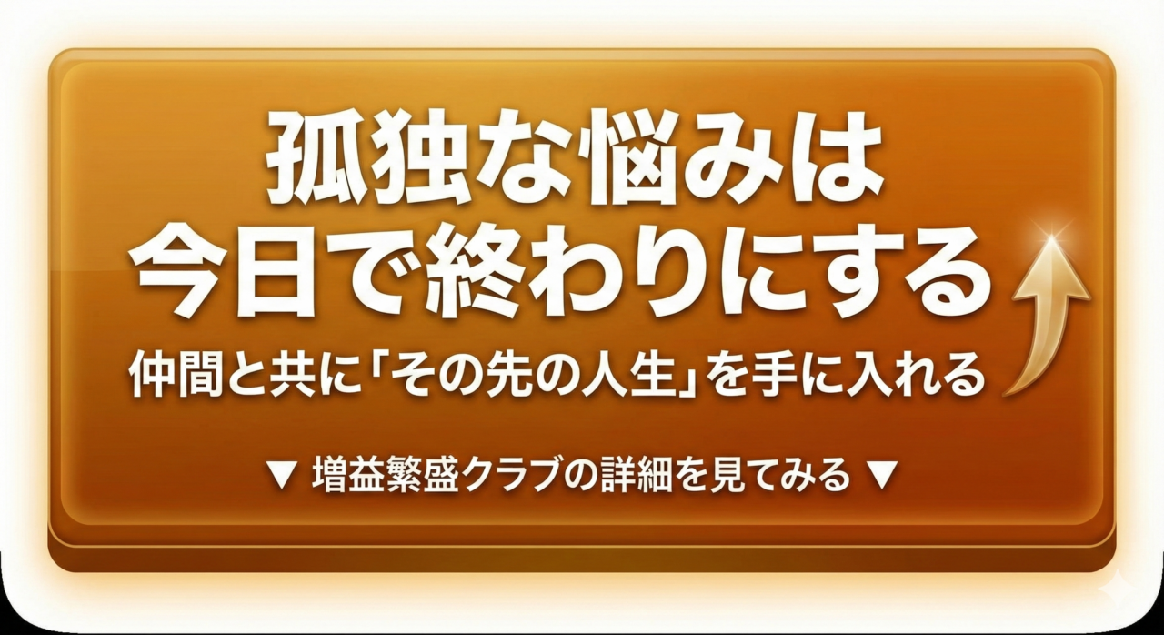 増益繁盛クラブには、かつてのあなたと同じように悩み、そこから這い上がった仲間がたくさんいます。彼らの姿を見ることで、成功が「遠い世界の話」ではなく「自分にも手が届くもの」に変わります。