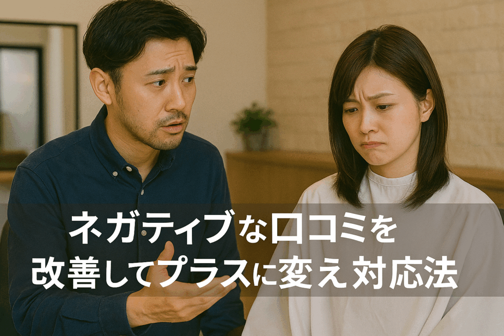 ネガティブな口コミを改善してプラスに変える対応法 ~悪い口コミを最高のチャンスに変える実践的テクニック~ ネガティブな口コミは本当に悪いことなの? 「悪い口コミを書かれてしまった…どうしよう」 そんな時、多くの美容室経営者は落ち込んでしまいま... -