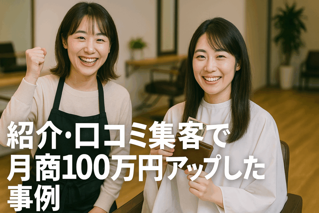 紹介・口コミ集客で月商100万円アップした事例 ~実際にあった成功ストーリーから学ぶ具体的手法~ 事例の概要:地方の個人美容室が1年で月商100万円アップ お店の基本情報 立地:地方都市の住宅街 規模:スタッフ3名(店長+スタッフ2名) 開業年数:7年... -