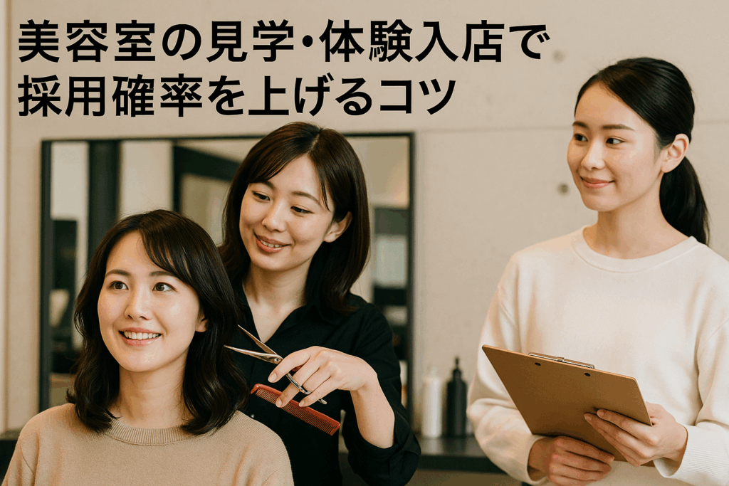 美容室の見学・体験入店で採用確率を上げるコツ ~百聞は一見に如かず、実際に体験してもらえば必ず選ばれる~ なぜ見学・体験入店が採用成功の鍵なのか? 「面接では良い印象だったのに、最終的に断られてしまう...」 「他店と比較検討されて、結局選ばれ... -