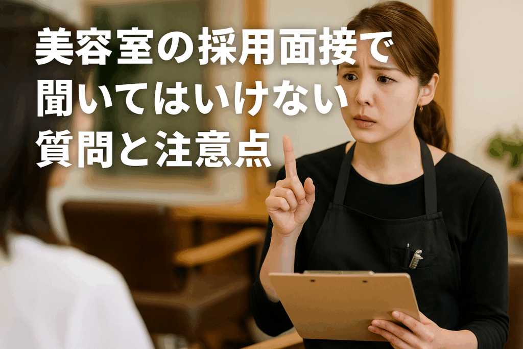 美容室の採用面接で聞いてはいけない質問と注意点 ~法的リスクを回避し、公正な採用を実現する面接ガイド~ なぜ面接での質問に注意が必要なのか? 「面接で何を聞いても自由だと思っていた…」「良かれと思って聞いた質問が、実は法的問題になる可能性が…... -