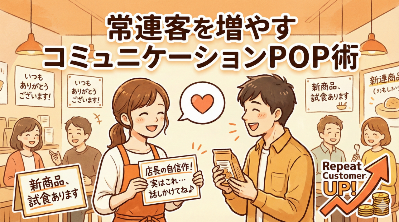 なぜ「美味しかった」だけでは再来店につながらないのか。3種類のリピーターの違い、サイコロステーキが180食に激増した仕掛けの全貌など、コミュニケーションPOPの考え方を基礎から解説します。