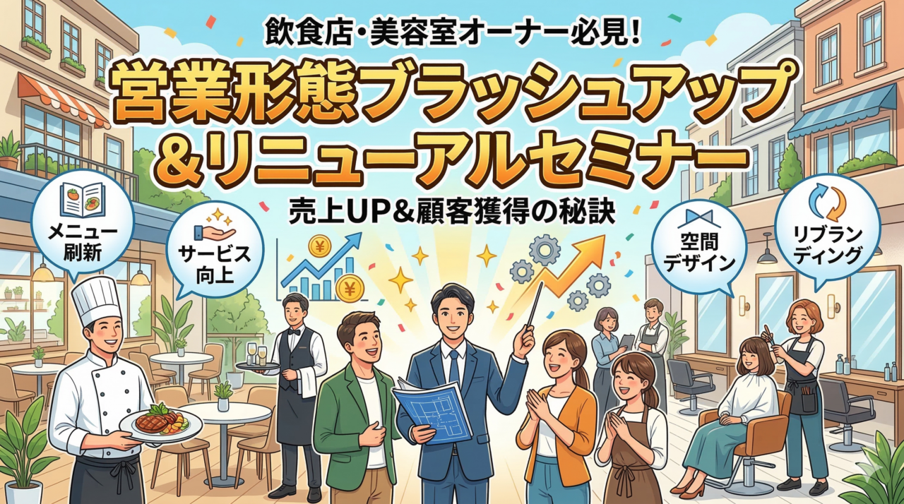 そんな悩みを抱えている飲食店・美容室オーナーに向けて、増益繁盛クラブが長年の実践と事例から体系化した「営業形態ブラッシュアップ&リニューアルセミナー」の教材を公開しています。